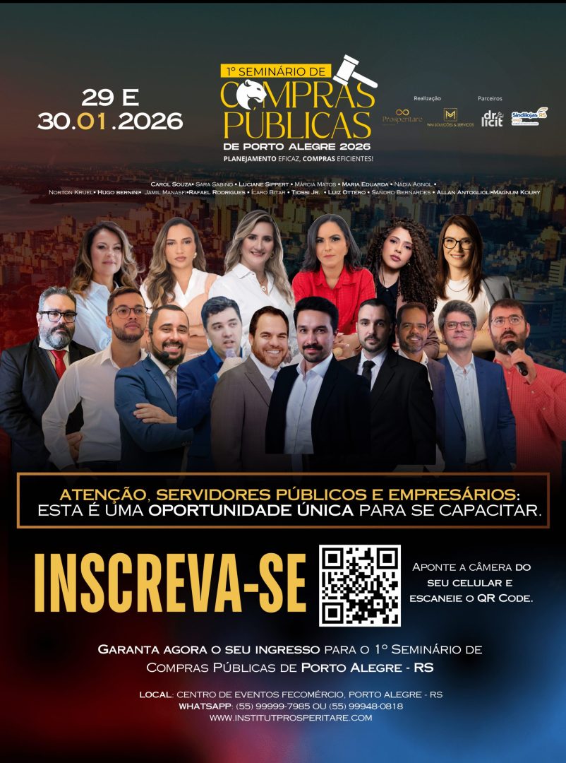 Na ocasião, terá conteúdo prático, atualizado e estratégico. Da nova Lei de Licitações à fiscalização de contratos. Do planejamento à execução segura dos recursos públicos.