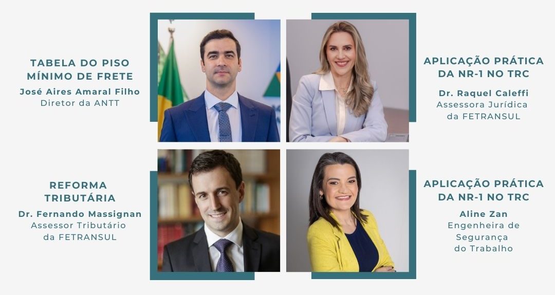 Na programação oficial, três temas centrais ganham destaque. O Piso Mínimo de Frete, apresentado por José Amaral Filho, Diretor da ANTT, traz atualizações sobre uma política que cobre mais de 150 categorias de cargas e é considerada essencial para evitar práticas predatórias. A Reforma Tributária, analisada por Dr. Fernando Massignan, Assessor Tributário da FETRANSUL, discute impactos diretos sobre o ICMS, que representa cerca de 30% dos custos operacionais das transportadoras gaúchas. Já a aplicação prática da NR-1, conduzida por Dra. Raquel Caleffi e Aline Zan, aborda a gestão de riscos ocupacionais e a segurança dos trabalhadores, tema urgente diante do dado de que mais de 40% das empresas ainda estão em fase de adequação.