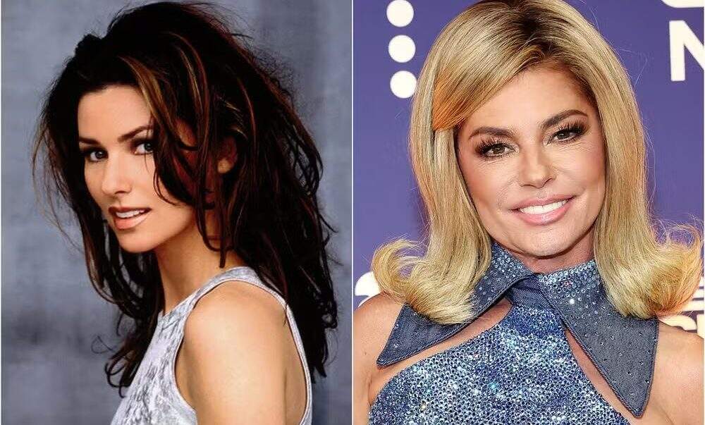 Shania Twain, de 59 anos, marcou presença no tapete vermelho do People’s Choice Country Awards na noite dessa quinta-feira (26), no Grand Ole Opry House, em Nashville, nos Estados Unidos. A cantora, que ficou famosa nos anos 1990 com a canção From This Moment On, desfilou com os cabelos loiros e um vestido longo azul.