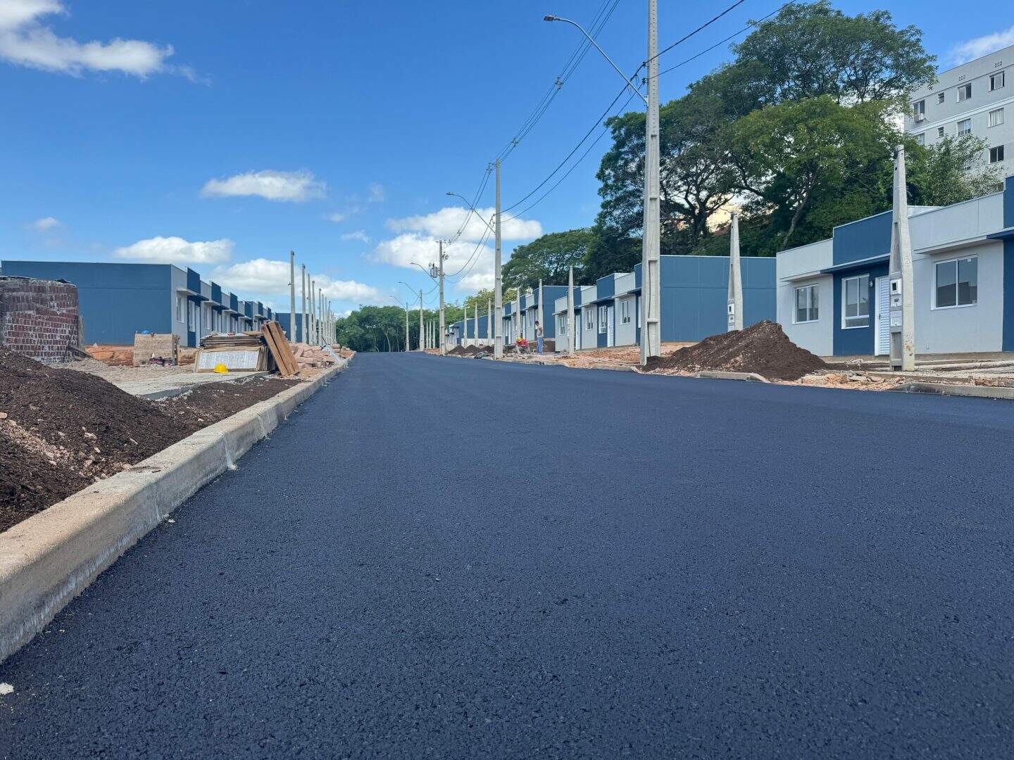 Equipes da Secretaria de Serviços Urbanos finalizaram nesta quarta-feira (26), a pavimentação asfáltica de um novo acesso de 200 metros para a rua Pedro Boticário, no bairro Glória, em Porto Alegre. A obra deve melhorar a circulação no loteamento onde foram construídas 31 unidades habitacionais para famílias atingidas pelas enchentes e outros eventos climáticos.