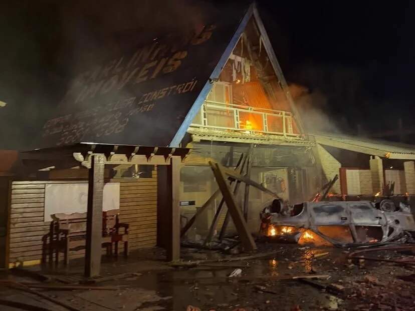 Após o impacto, o veículo pegou fogo e as chamas se espalharam até a parte frontal do prédio. O Corpo de Bombeiros foi acionado e conseguiu conter o incêndio.