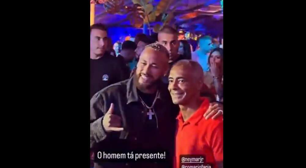 Neymar chegou na festa cercado por seguranças. Ele posou para fotos ao lado de Romário. Em um vídeo, é possível ver um momento em que Romário está no palco e agrade ao microfone a presença do jogador. “Neymar está aí, filho da… irmão, obrigado pela tua presença. Maior satisfação ter você aqui”, disse o baixinho.
