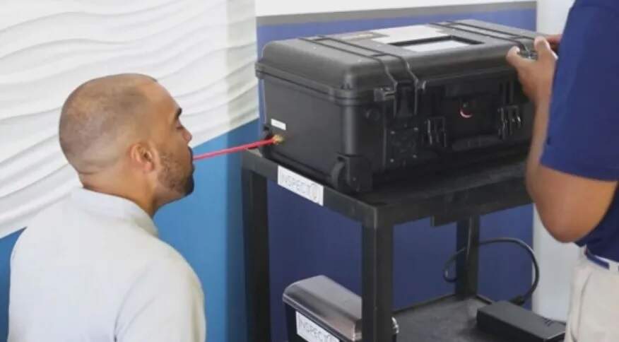 A FDA disse que o bafômetro InspectIR Covid-19, que tem aproximadamente o tamanho de uma bagagem de mão, pode ser usado em consultórios médicos e locais de testes móveis. Os resultados podem sair em menos de três minutos.