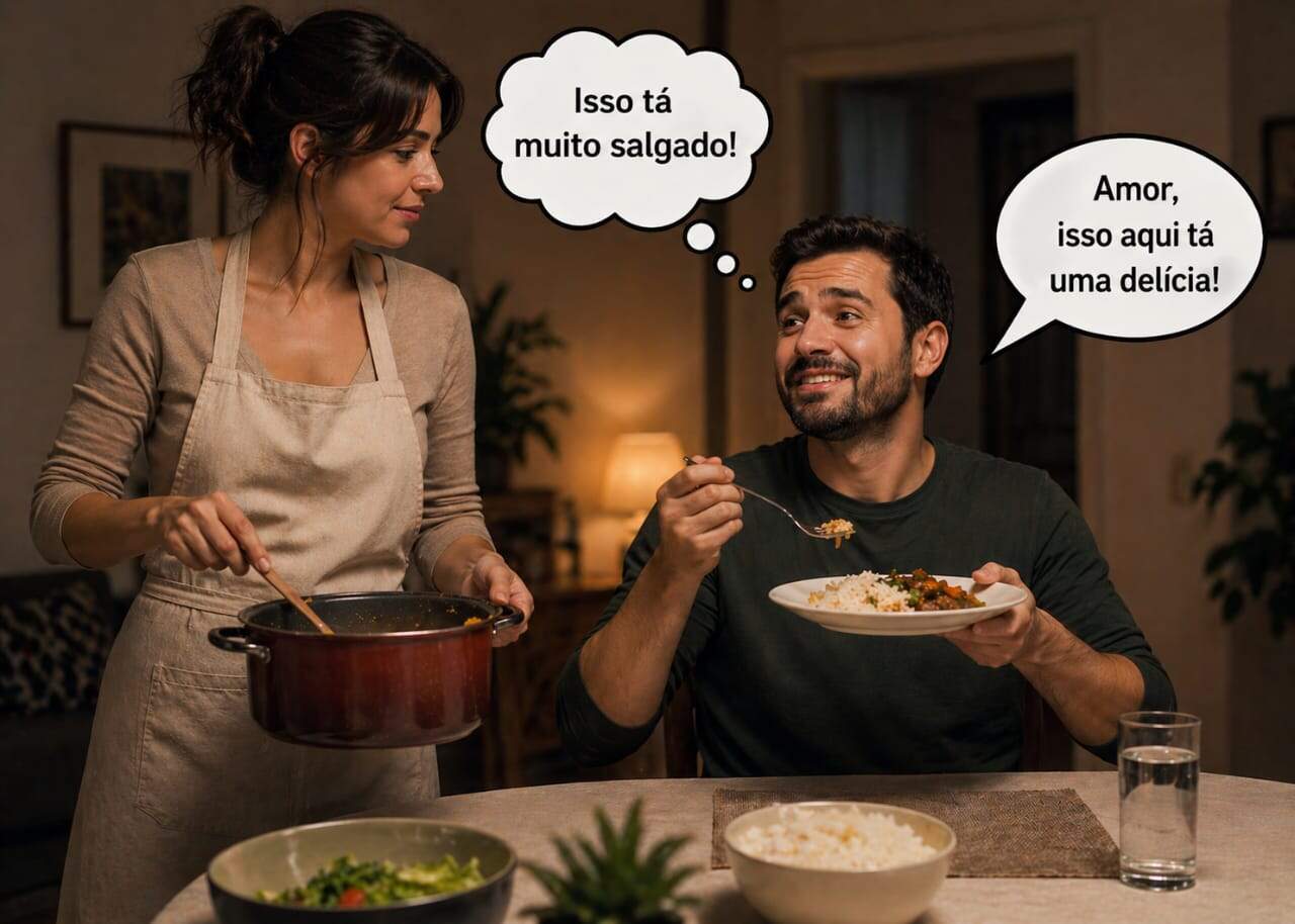 Mas a vida real não tem filtro. Ela tem boleto. Tem cansaço. Tem discussão por causa de louça, toalha molhada na cama… e aquelas mágoas pequenas que, quando não resolvidas, viram silêncio desconfortável.