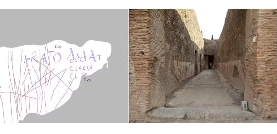 Entre os registros destacados está um grafite de aproximadamente 25 centímetros de comprimento por 3,5 centímetros de altura com a inscrição “Erato amat” (“Erato ama”, em tradução livre). O nome era comum entre mulheres escravizadas ou libertas, mas não é possível identificar o destinatário da mensagem, já que parte do texto se perdeu ao longo do tempo.