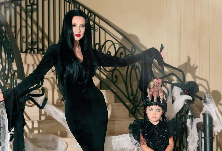 Ana Paula Siebert e Vicky Justus apareceram combinando em fantasia de “Família Adams” e encantaram a internet. Prontas para o Halloween, mãe e filha aparecem como Morticia e Wandinha.