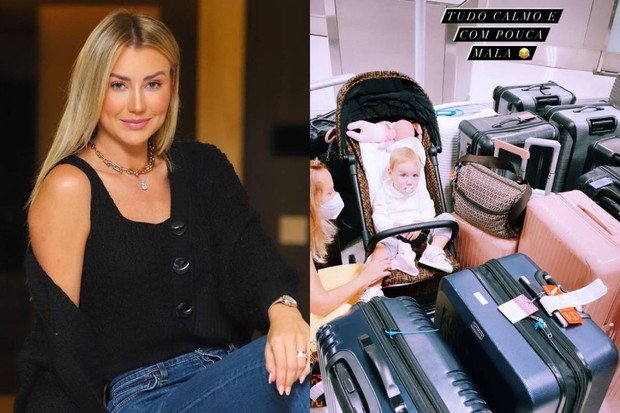 “Tudo calmo e com pouca mala”, brincou Ana. Além disso, ela mostrou os acessórios da filha nada básicos, tudo da grife italiana Fendi, como uma bolsa de troca, de cerca de R$ 3 mil, e o carrinho, de cerca de R$ 20 mil.