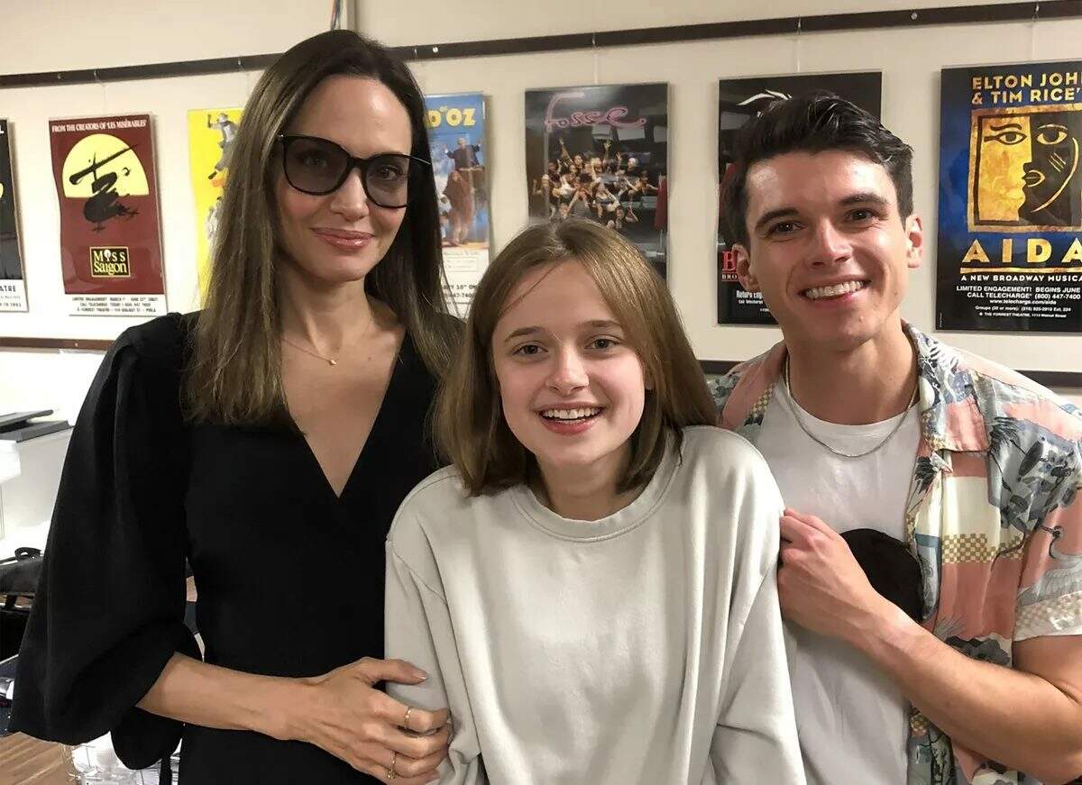 Angelina Jolie e sua filha mais nova, Vivienne, foram assistir a uma peça de teatro na Filadélfia, Dear Evan Hansen, e ao final fizeram questão de posar com o elenco nos bastidores. As imagens foram compartilhadas no perfil do Twitter do espetáculo e mostram a estrela e a adolescente posando com Anthony Norman em um dos cliques.