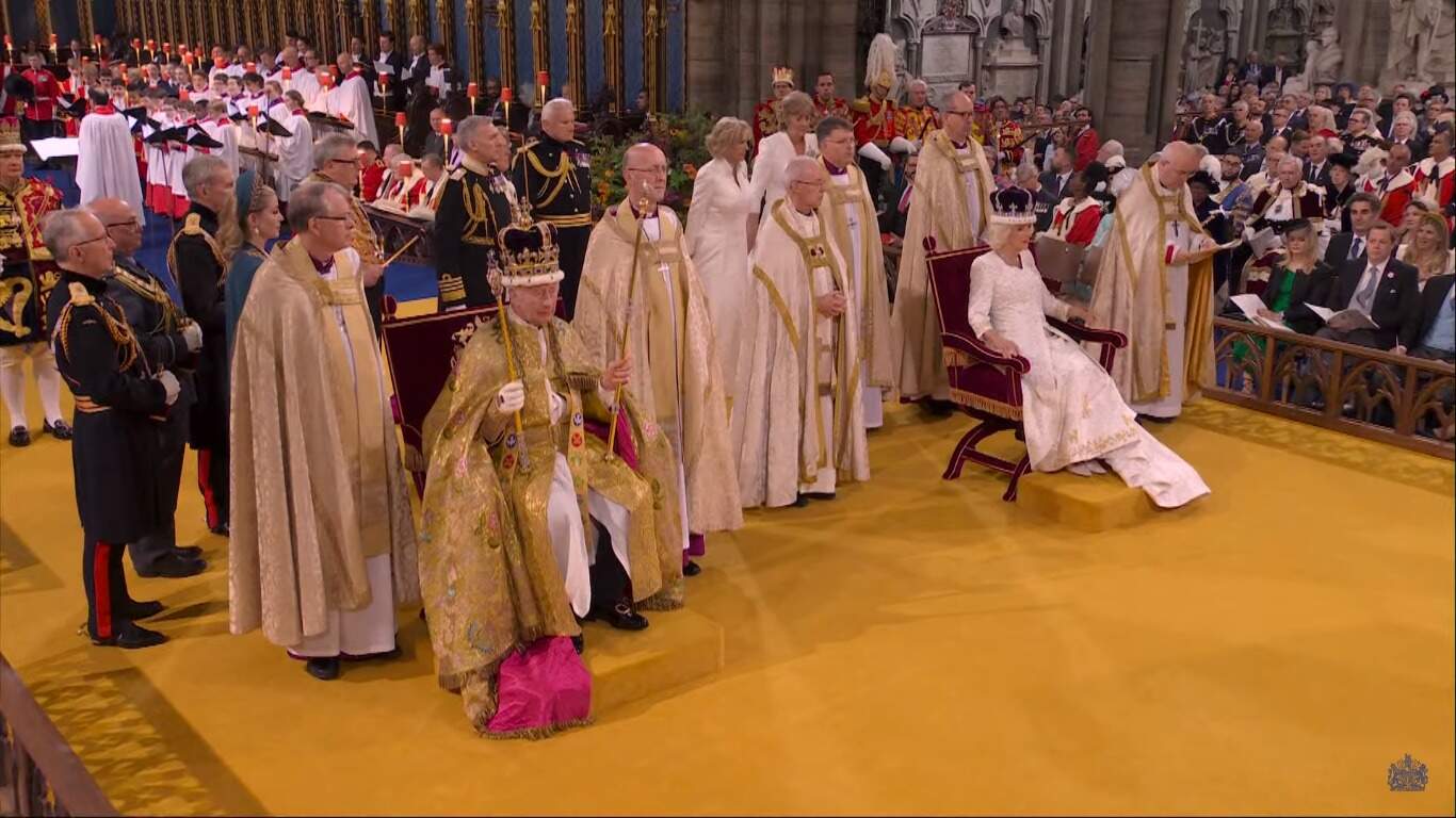 Por fim, Charles foi coroado com a coroa de Santo Eduardo. É a única vez que ele usará o objeto, que é reservada para a coroação de um novo monarca.