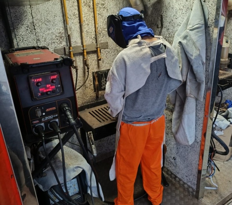 A Secretaria de Sistemas Penal e Socioeducativo do RS iniciou na última semana a qualificação técnica em soldagem para 21 apenados de Camaquã dentro do projeto “Mãos que Reconstroem”, em parceria com o Senai. A iniciativa, financiada com recursos da Vara de Execuções Criminais local, visa suprir a demanda do mercado por mão de obra especializada e consolidar o trabalho prisional como ferramenta de reinserção social e segurança pública.