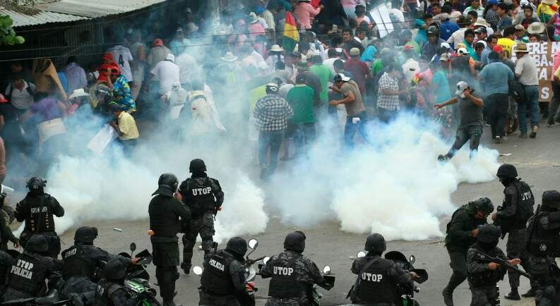 Apoiadores de Evo Morales invadiram o Regimento “Cacique Juan Maraza”, no município de Villa Tunari, na região de Cochabamba, armados com bastões de madeira, e fizeram militares reféns. Um regimento naval também foi invadido.