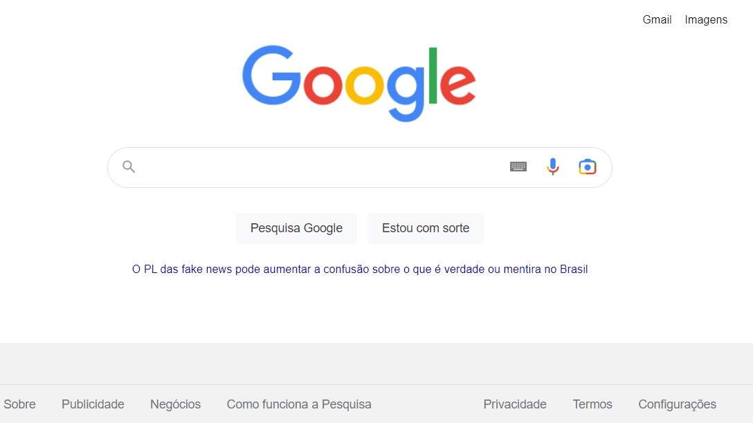 Após a divulgação da medida cautelar determinada pela Senacom (Secretaria Nacional do Consumidor), o Google retirou o aviso contra o PL (Projeto de Lei) das Fake News da página inicial do buscador.