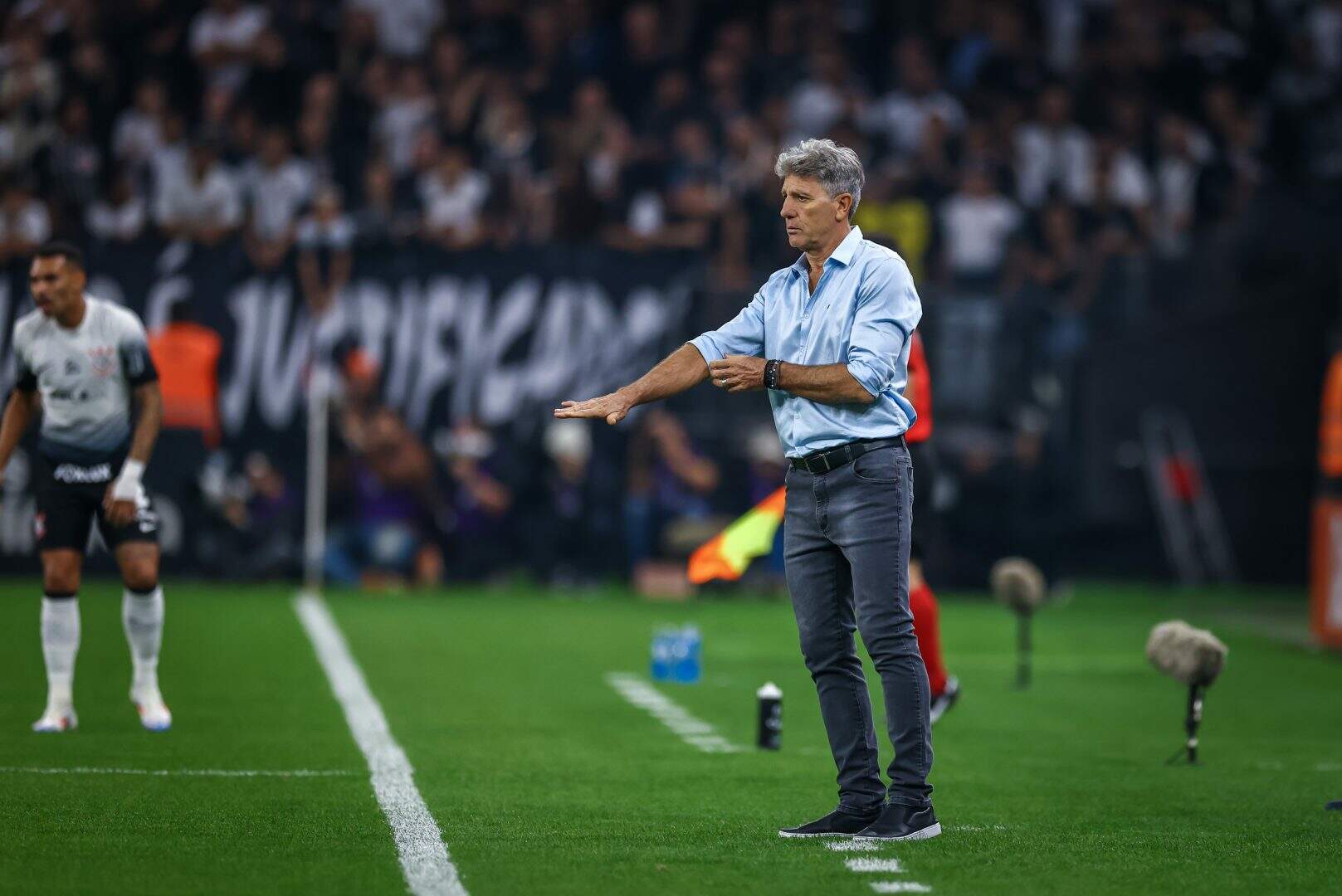 “Vimos um pênalti que o VAR chama o árbitro e um pênalti que é a maior mentira do mundo. Fica difícil trabalhar. O Corinthians é muito grande, não precisa disso. Isso mancha ainda mais a imagem da CBF, essa que é a realidade, mancha a ferramenta do VAR. Não foi falta no lance do pênalti. Aí o VAR, Corinthians, Itaquera… Já sabemos como as coisas funcionam. O presidente da CBF está em Paris e as coisas acontecendo aqui. Continuamos contra tudo e contra todos”, reclamou o comandante gremista em entrevista coletiva após o jogo.
