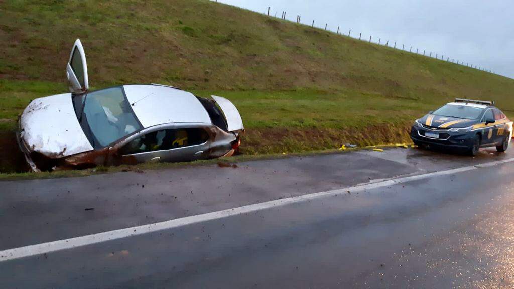 Durante fiscalização na rodovia, os policiais deram ordem de parada ao motorista de um Logan com placas do Paraná. Ele desobedeceu e fugiu em alta velocidade.
