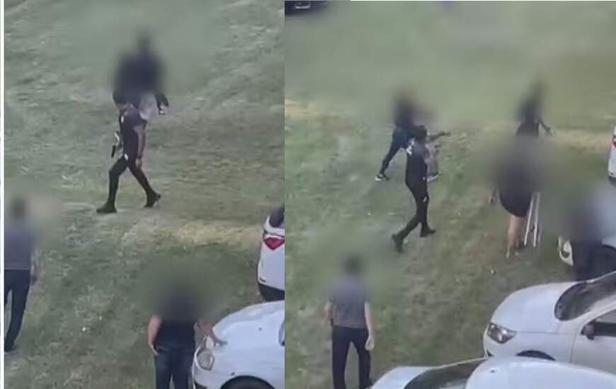 Vídeos gravados no local mostram o árbitro caminhando em direção a um homem com a arma em mãos e desferindo um chute. Uma mulher aparece tentando conter a confusão.