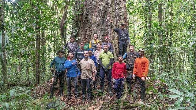 Após percorrerem cerca de 40 quilômetros de floresta, em um esforço que incluiu vencer corredeiras e caminhar por dias, pesquisadores brasileiros conseguiram ficar diante da maior árvore da Amazônia já mapeada. O encontro com a gigante da espécie angelim-vermelho, de 88,5 metros de altura e 9,9 metros de circunferência, na floresta estadual do Parú, no Pará, aconteceu três anos após a árvore ser localizada por satélite, em um verdadeiro santuário da espécie.