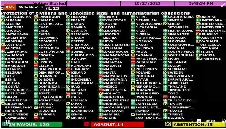 Nesta sexta-feira (27), a Organização das Nações Unidas (ONU) aprovou uma proposta de resolução proposta pela Jordânia e pelos países árabes sobre o conflito entre Israel e o grupo radical islâmico Hamas. A emenda proposta pelo Canadá que pedia uma condenação direta do Hamas foi negada.