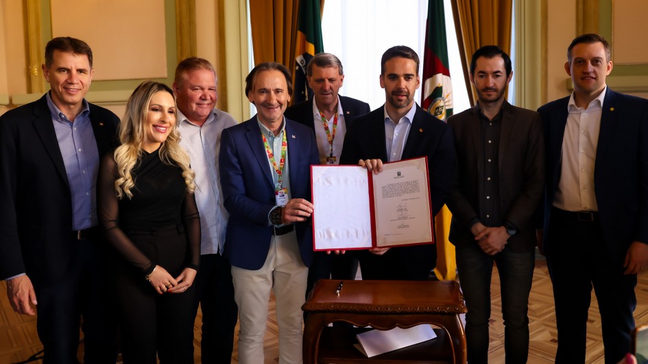 O governador Eduardo Leite assinou nesta quinta-feira (17), no Palácio Piratini, a ordem de início da obra da nova ponte Santa Bárbara, na ERS-431, entre São Valentim do Sul e Santa Tereza, na Serra Gaúcha. Na ocasião, ele também anunciou a liberação de R$ 11,7 milhões para a construção da nova ponte na VRS-843, em Feliz, no Vale do Caí.