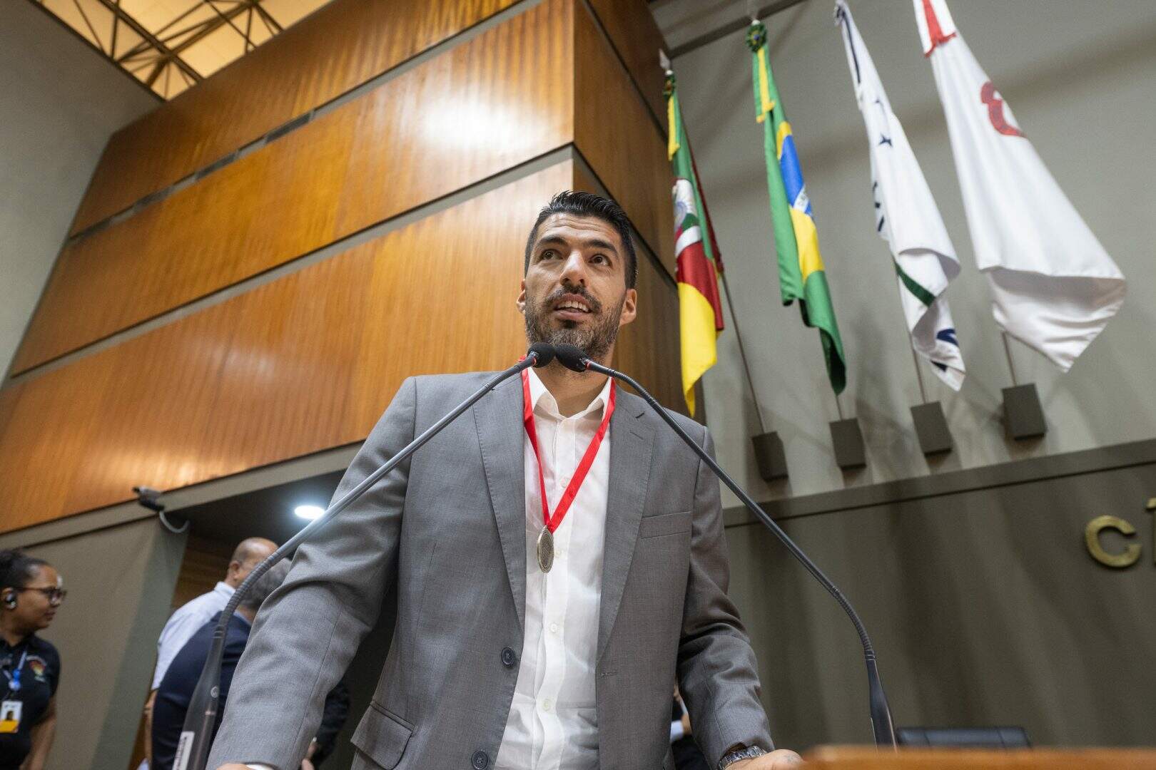 Esta terça-feira (28) foi marcada por homenagens ao atacante do Grêmio Luis Suárez. Após receber a Medalha do Mérito Farroupilha, por parte da Assembleia Legislativa do Rio Grande do Sul, o uruguaio recebeu, por parte da Câmara Municipal de Porto Alegre, o título de Cidadão de Porto Alegre. A solenidade aconteceu na Câmara e contou com a presença de vereadores, autoridades e torcedores.
