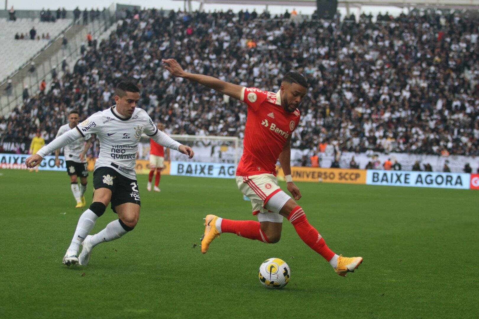 Um lance quase na bandeirinha de escanteio com Fagner, lateral do Corinthians, incomodou o atacante do Inter Wanderson.