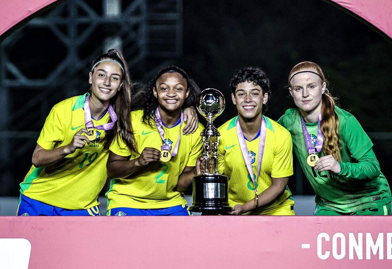 Quatro atletas da Base Feminina do Grêmio sagraram-se campeãs da Conmebol Liga Evolução com a Seleção Brasileira Sub-15. A goleira Gabriele, a lateral-direita Dafine, a atacante Lara Mônica e a meio-campista Mari Gigante conquistaram o título inédito neste domingo (5), em vitória do Brasil sobre a Argentina. Foi a primeira edição da competição, realizada em Yapané, no Paraguai.
