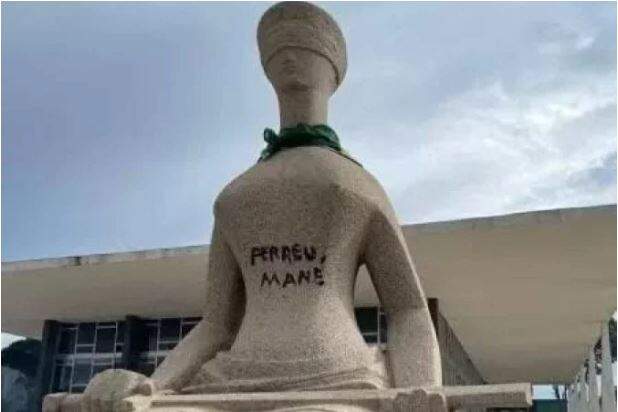 A Polícia Federal prendeu nessa sexta-feira (17) uma mulher acusada de pichar a expressão “perdeu, mané” na estátua da deusa Têmis, fixada em frente ao prédio do Supremo Tribunal Federal (STF). Também foi preso um homem que aparece em vídeo sentando na cadeira do ministro Alexandre de Moraes, arrancada do plenário.