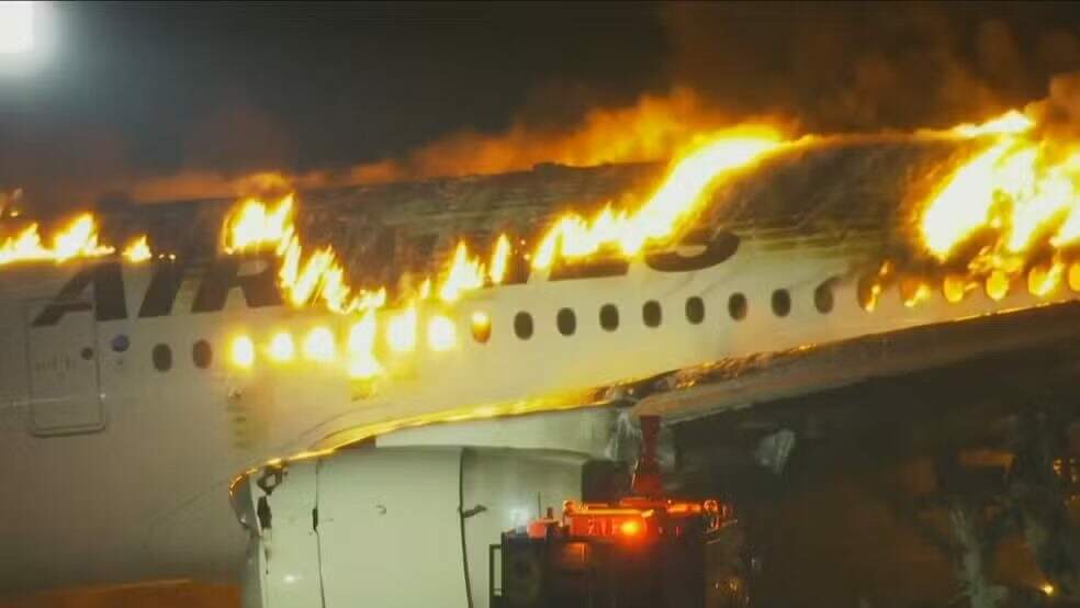 Um avião da Japan Airlines com 367 passageiros a bordo pegou fogo após colidir contra uma aeronave da Guarda Costeira do Japão na pista do aeroporto de Haneda, em Tóquio, nesta terça-feira (2). O acidente aconteceu durante o pouso.