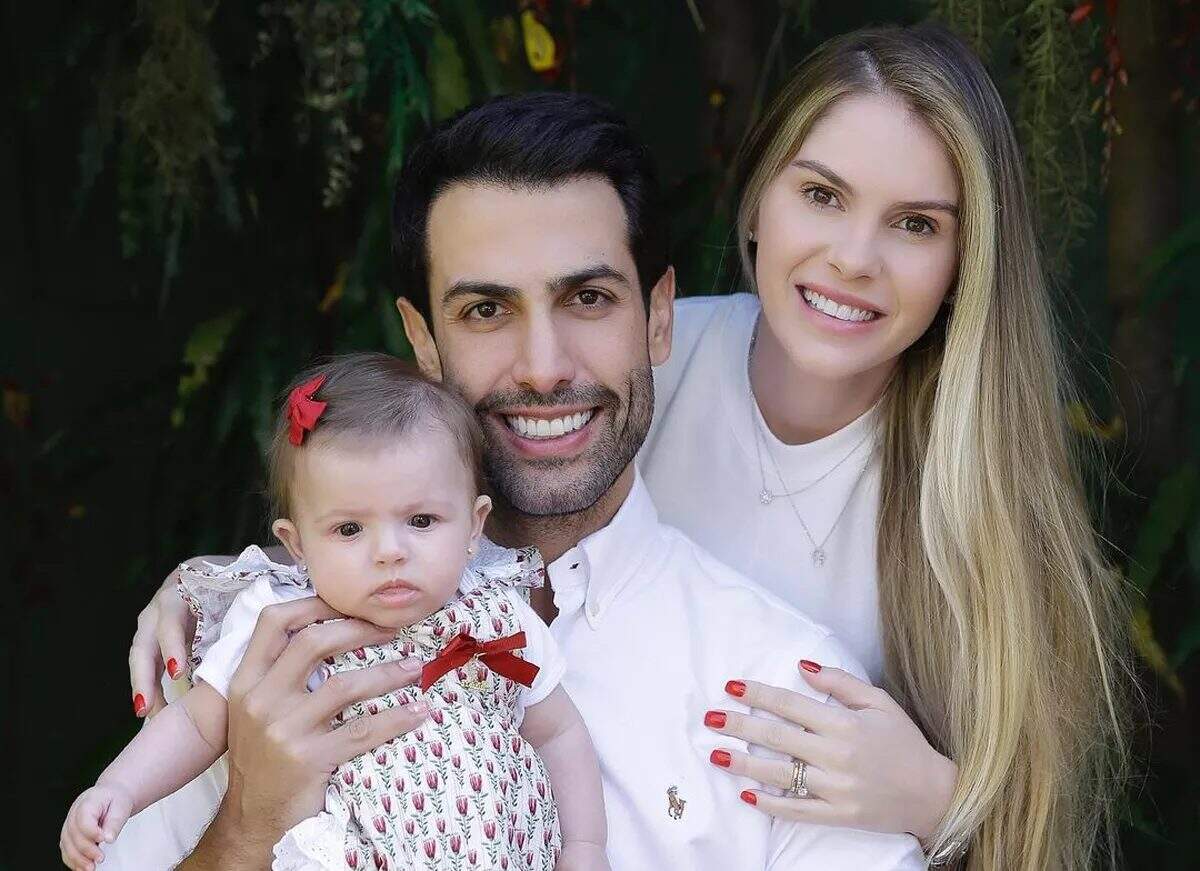 Bárbara Evans usou o Instagram nesta terça-feia (09) para celebrar o aniversário do marido, Gustavo Theodoro. Na imagem, o casal aparece com a filha, Ayla, que nasceu em abril.