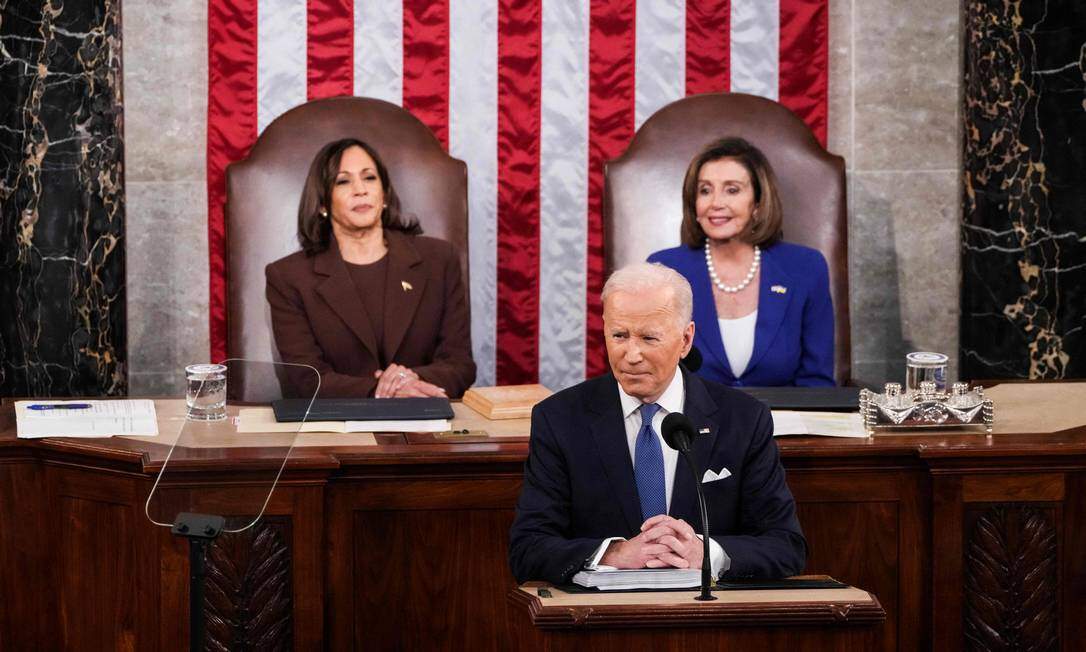 “A guerra de Putin foi premeditada e sem provocação. Ele rejeitou repetidos esforços pela diplomacia. Ele pensou que o Ocidente não responderia. E ele pensou que poderia nos dividir aqui em casa”, disse Biden, se referindo em alguns momentos ao líder russo como “ditador”. “Putin estava errado. Nós estávamos prontos. Nós estamos unidos e nós permanecemos unidos”.