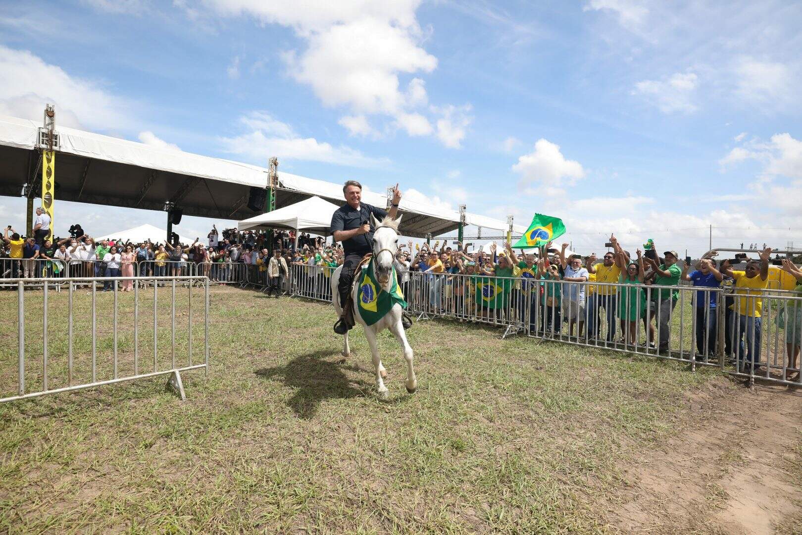O presidente Jair Bolsonaro chegou a Parnamirim (RN) por volta das 9h40 dessa quarta-feira (30) a cavalo para a entrega da Estação Cajupiranga, na Grande Natal. A chegada de Bolsonaro foi acompanhada dos ministros potiguares, Rogério Marinho, do Desenvolvimento Regional e do ministro Fábio Faria, das Comunicações. Após, o presidente saudou os apoiadores montado a cavalo, antes do evento oficial. Depois, ele saiu em comboio de motocicletas na BR-101 para também cumprimentar apoiadores.