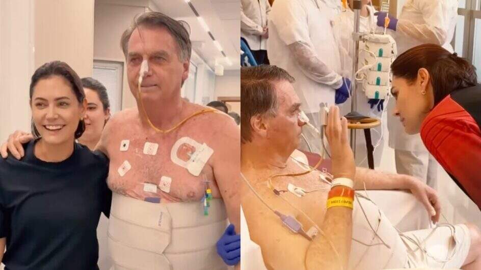 O registro mostra Michelle acompanhando o ex-presidente durante suas caminhadas nos corredores do hospital e cuidando do marido, fazendo massagem nos pés de Bolsonaro e arrumando o cabelo dele. “Agradeço a você por todo apoio e energia que tem depositado neste momento. Minha esposa, Michelle Bolsonaro”, disse Bolsonaro, na legenda.