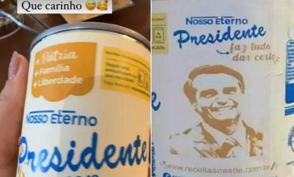 Após a ex-primeira dama Michelle Bolsonaro fazer uma publicação em que mostrava uma embalagem personalizada de um leite condensado recebido pelo marido, o ex-presidente Jair Bolsonaro (PL), a empresa Nestlé – responsável por um produto parecido com o da postagem – afirmou que não foi a autora da personalização da embalagem, que foi presenteado ao ex-presidente.
