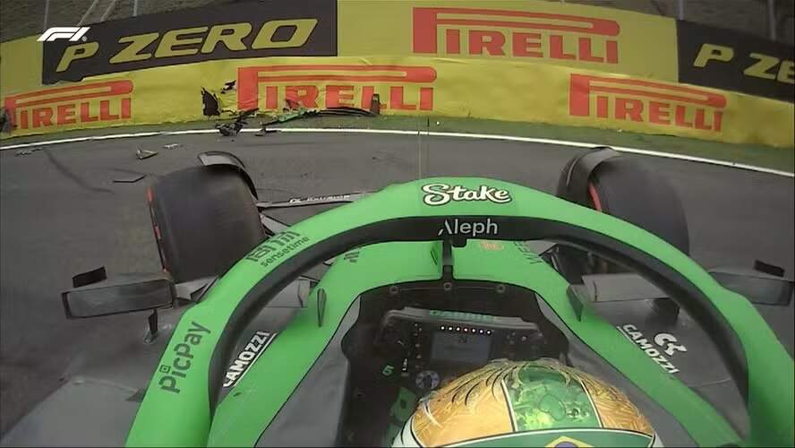 Depois de uma batida forte durante a corrida sprint no sábado (8), o que o deixou de fora do treino classificatório, o brasileiro Gabriel Bortoleto (Sauber) precisou largar dos boxes neste domingo (9) no Autódromo de Interlagos.