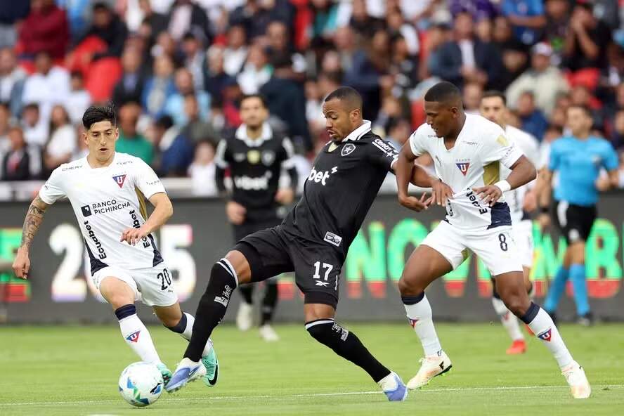O Botafogo está eliminado da Copa Libertadores da América. O atual campeão perdeu por 2 a 0 para a LDU, nesta quinta-feira (21), no estádio Casa Blanca, na altitude de Quito, no Equador e se despediu da competição nas oitavas de final. Villamíl e Alzugaray anotaram os gols do time equatoriano, que avançou às quartas com vitória por 2 a 1 no agregado. Agora, a LDU terá pela frente o São Paulo valendo vaga nas semifinais.