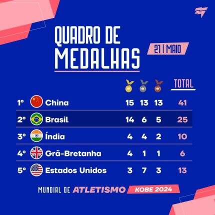 Faltando menos de 100 dias da abertura da Paralimpíada de Paris, na França, a equipe brasileira de atletismo paralímpico assegurou mais quatro medalhas de ouro no Mundial, que ocorre até o próximo sábado (25) em Kobe, no Japão.