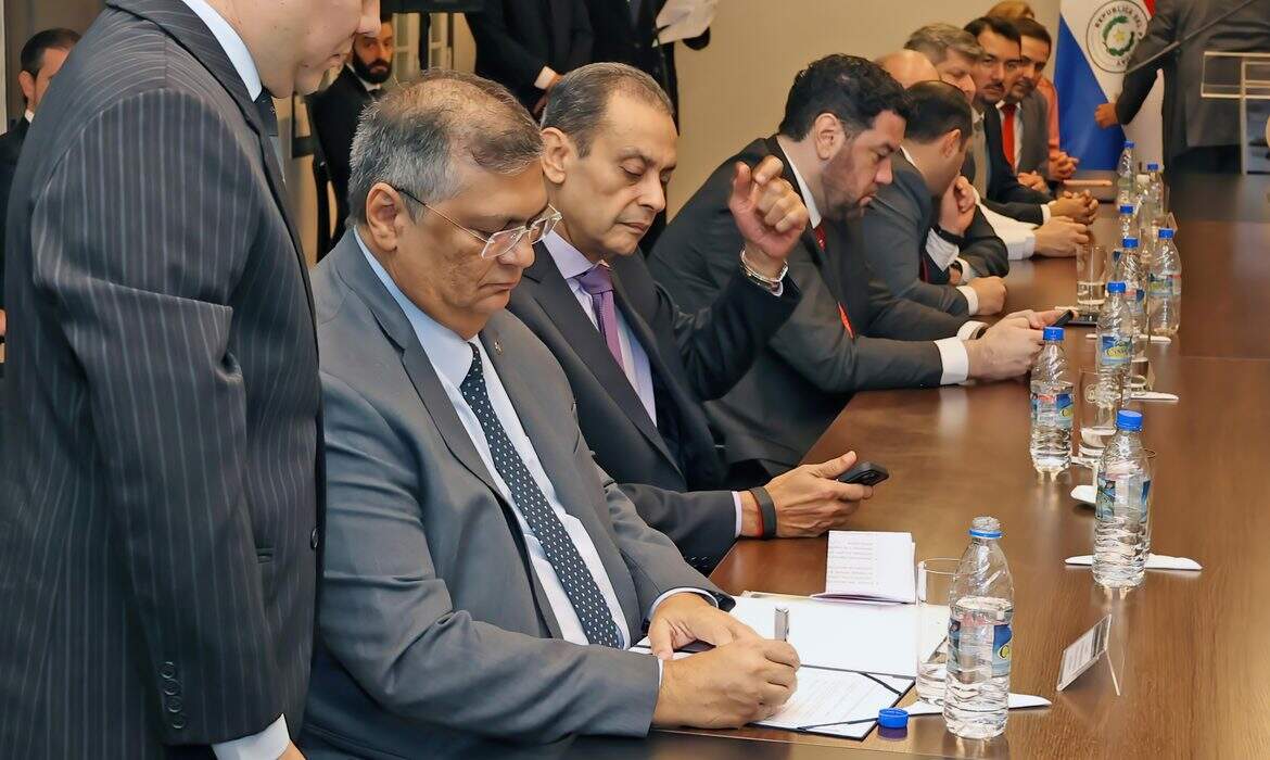 O ministro da Justiça e Segurança Pública, Flávio Dino, e o presidente do Paraguai, Santiago Peña, assinaram nesta sexta-feira (27), em Assunção, o Compromisso de Assunção Contra a Corrupção e o Crime Organizado, que prevê a atuação conjunta entre os dois países no enfrentamento ao narcotráfico, ao contrabando de armas, à lavagem de dinheiro e à corrupção, com o objetivo de intensificar a resposta policial e jurídica às redes criminosas que alimentam o tráfico de drogas e armas e a lavagem de ativos nos dois países.