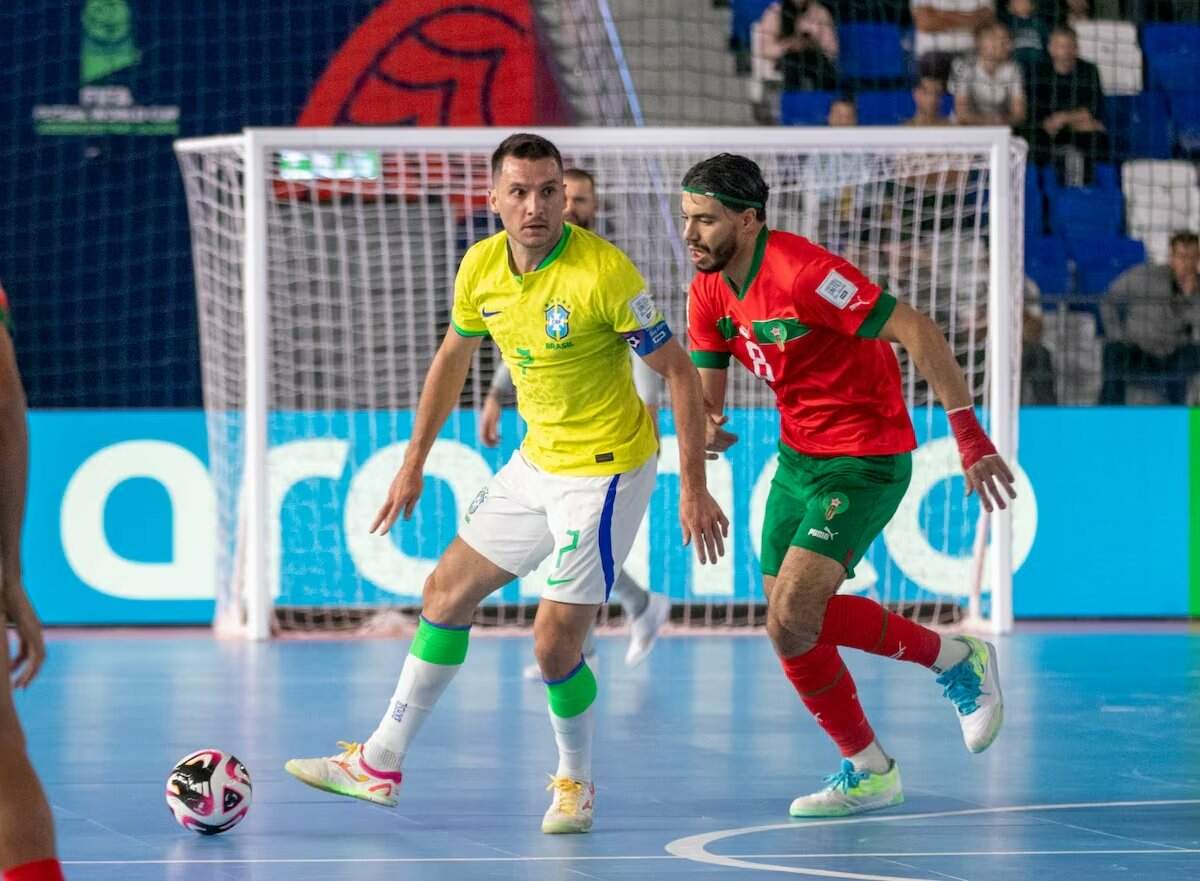 Maior vencedor da Copa do Mundo de futsal, com cinco títulos, a Seleção Brasileira deu mais um passo em busca do hexa ao derrotar o Marrocos por 3 a 1, neste domingo, em Bucara, no Usbequistão, com gols de Marcel, artilheiro do Mundial, Leandro Lino e Dyego.