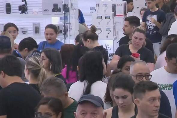 Os comerciantes aproveitaram o feriado da Proclamação da República no Brasil para dar início às promoções. Os eletrônicos são os produtos mais procurados. “Celulares é o número um na busca Principalmente dos brasileiros, né? Depois está o ar-condicionado e televisão”, explicou o empresário Jorbel Griebeler.