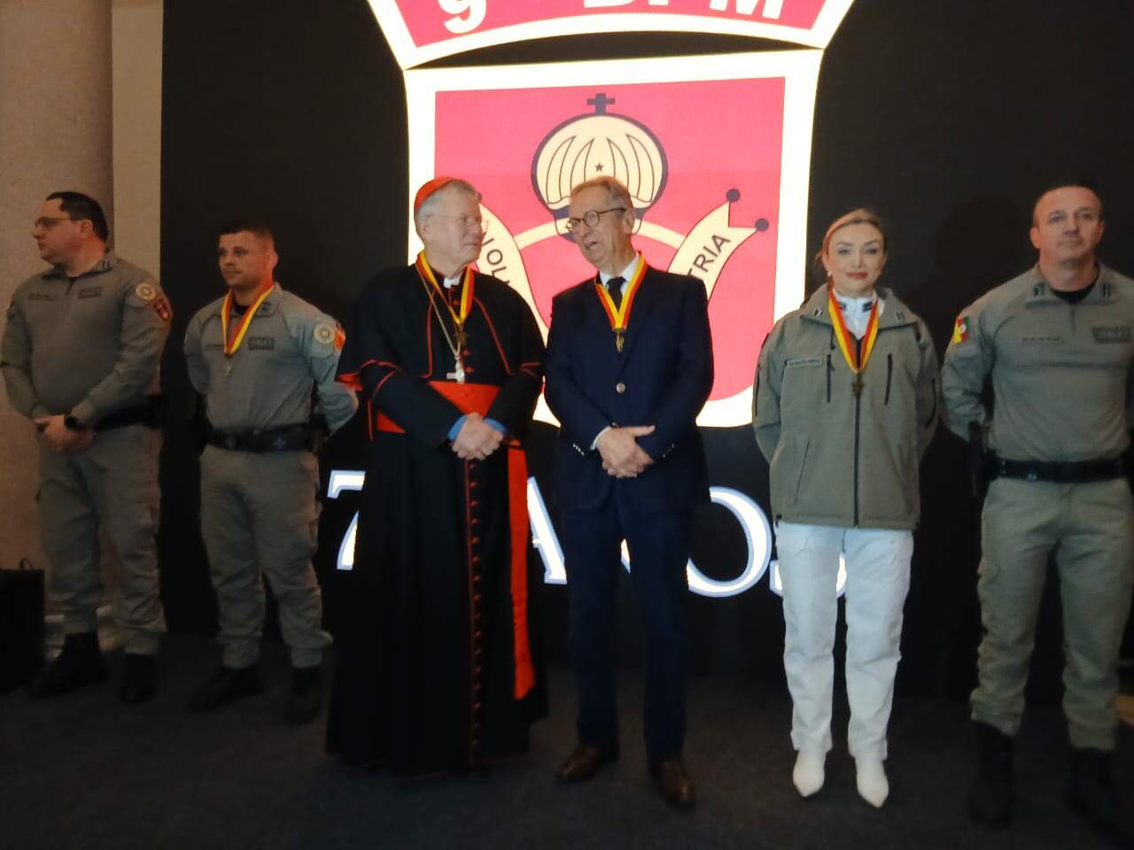 A Brigada Militar do Rio Grande do Sul realizou nesta segunda-feira (11/08) a cerimônia de comemoração dos 70 anos do 9º Batalhão de Polícia Militar (9º BPM), sediado em Porto Alegre. O evento reuniu autoridades civis e militares, além de representantes da sociedade, e teve como destaque a entrega da Comenda Pedro e Paulo a membros da sociedade civil e pública, entre eles o vice-presidente da Rede Pampa, Paulo Sérgio Pinto .