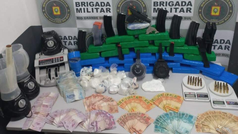 Ao todo, foram apreendidos mais de 22 quilos de drogas, entre tabletes de cocaína e maconha e porções de crack, mais de R$ 4 mil, uma pistola calibre .380, duas balanças de precisão, duas prensas hidráulicas, três liquidificadores, mais de 40 munições variadas, entre outros equipamentos.