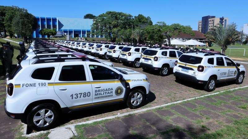 A Brigada Militar recebeu, na manhã desta sexta-feira (18), na Academia de Polícia Militar (APM), em Porto Alegre, 274 novos veículos, entregues pelo governo estadual. São 32 viaturas semiblindadas do modelo Renault Duster e 242 motocicletas Yamaha Lander para reforçar o policiamento ostensivo em 53 municípios gaúchos.