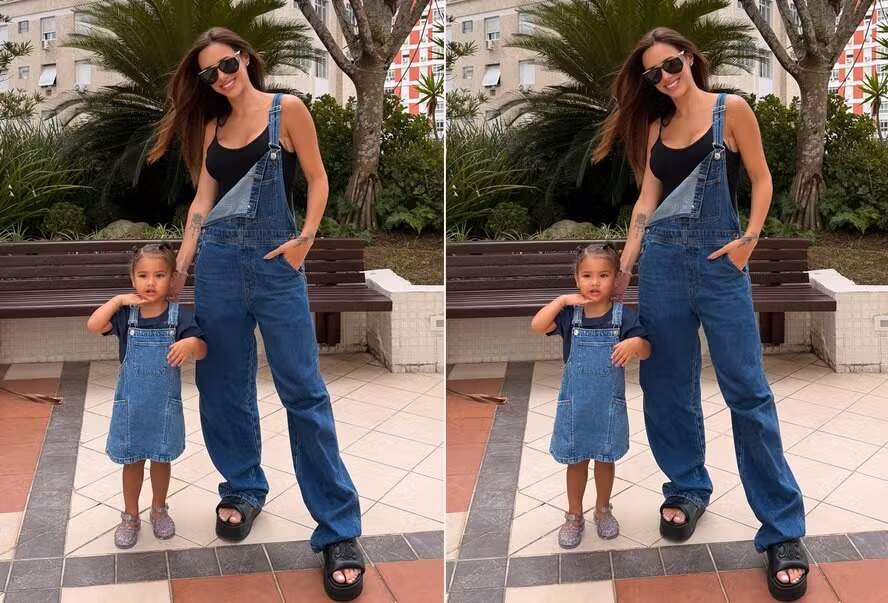 A influenciadora Bruna Biancardi, 31, encantou os seguidores ao publicar no Instagram um registro ao lado da filha mais velha, Mavie, de 2 anos, fruto de seu relacionamento com Neymar. Na imagem, feita em um playground de condomínio, mãe e filha aparecem com looks combinados: Bruna veste jardineira jeans com blusa preta, enquanto Mavie usa jardineira em versão vestido com camisa escura.