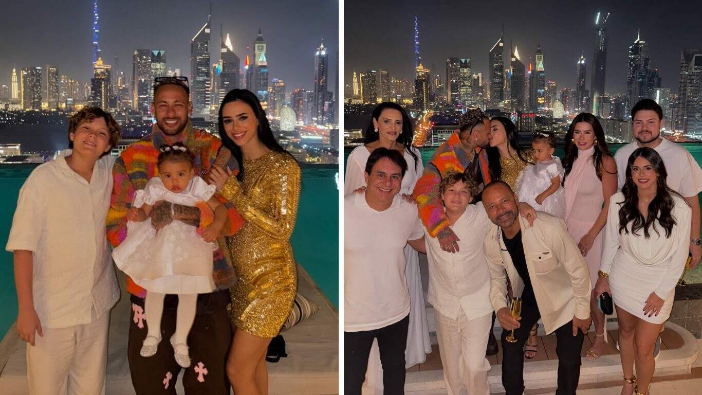 Bruna Biancardi compartilhou em suas redes sociais fotos da noite de Réveillon ao lado de sua família. A influenciadora aproveitou o final de ano em Dubai com Neymar e Mavie, filha do casal de 1 ano.