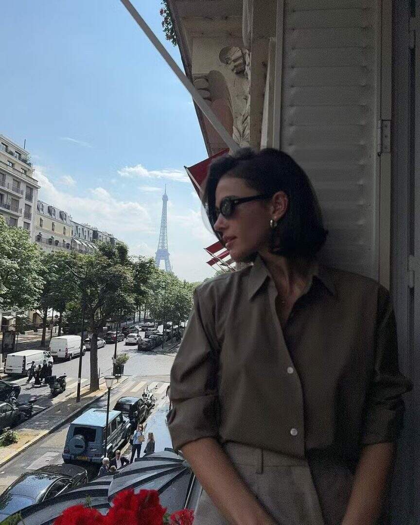 Após curtir uma viagem pelo Japão acompanhada de João Guilherme, Bruna Marquezine está em Paris, capital da França. Na manhã desta quarta-feira (03), a atriz, de 28 anos de idade, compartilhou uma foto tirada na varanda do hotel em que está hospedada, com vista para a torre Eiffel, famoso cartão postal da cidade.
