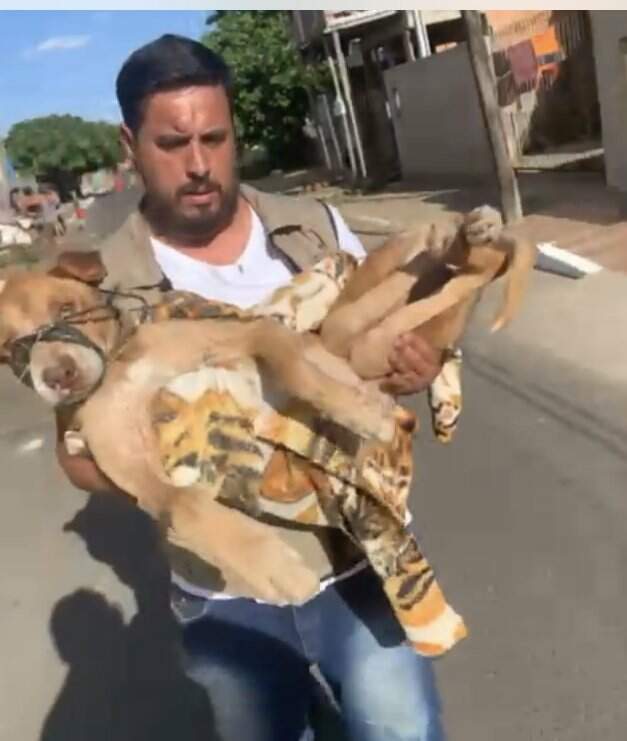 Após receber a informação de que havia um cachorro agonizando na rua União, em Canoas, na Região Metropolitana de Porto Alegre, o secretário especial do Bem-Estar Animal do município, Gabriel Gonçalves da Silva, foi até o local para resgatar o cão neste sábado (19).