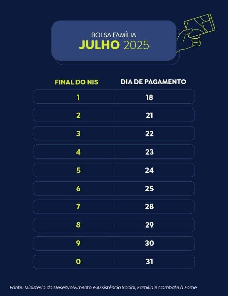 A Caixa Econômica Federal começou a pagar nesta sexta-feira (18) a parcela de julho do programa Bolsa Família. Os primeiros a receber são os beneficiários com NIS (Número de Inscrição Social) com final 1.