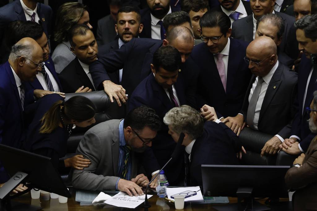 Pelo menos três deputados são mencionados pelos colegas como possíveis alvos de punição —Zé Trovão (PL-SC), que barrou por alguns segundos a subida de Motta à mesa, e Marcel van Hattem (Novo-RS) e Marcos Pollon (PL-MS), que se recusaram em um primeiro momento a deixar as cadeiras que ocupavam.