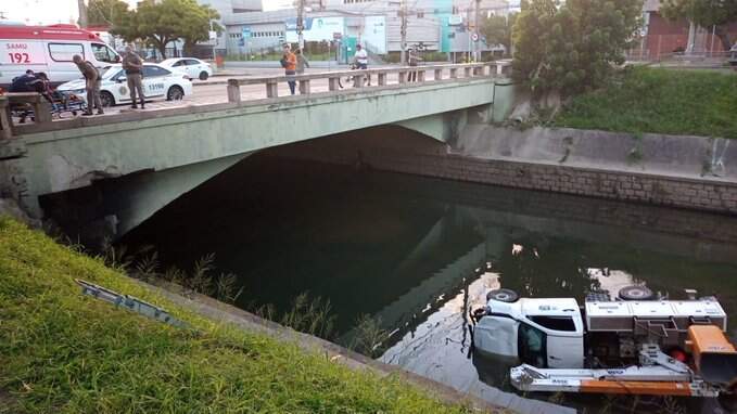 Um caminhão a serviço da CEEE Equatorial caiu no Arroio Dilúvio, na avenida Ipiranga, em Porto Alegre, no início da manhã desta sexta-feira (26).