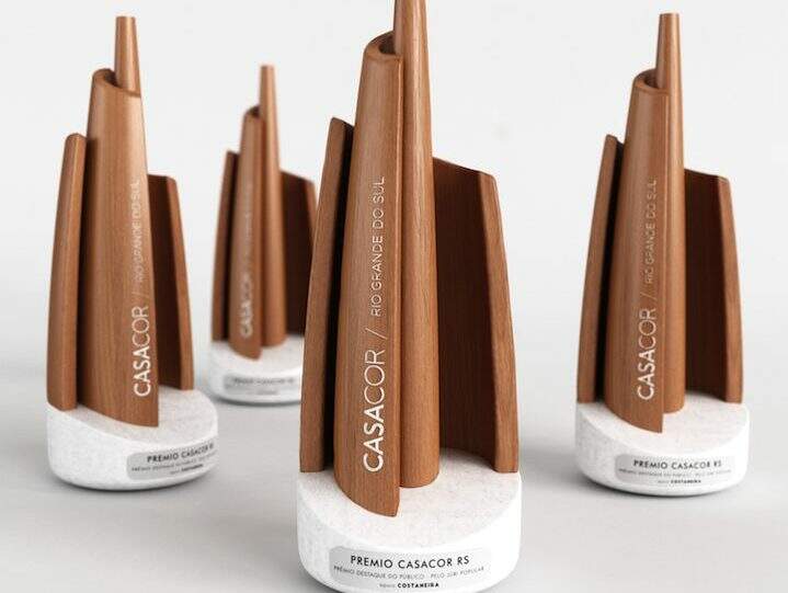 O arquiteto e artesão Bruno De Lazzari é o responsável pela criação do troféu que será entregue para as categorias principais. A peça exclusiva foi inspirada no tema central da mostra, “A Casa Original”, que propõem uma série de reflexões, sobretudo pelo evidente desejo de retorno às origens, de buscar na ancestralidade e na simplicidade o necessário equilíbrio entre o passado e o futuro. O troféu é uma escultura produzida em madeira e mármore resinado.