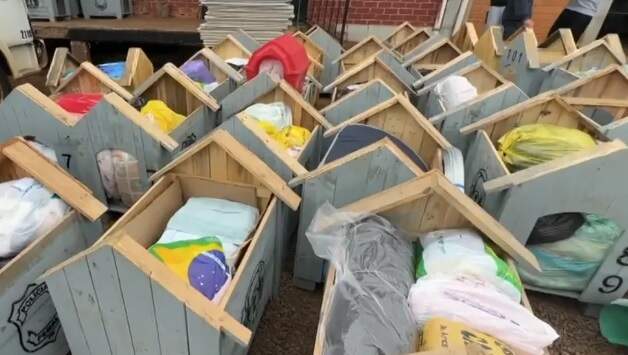 A doação é parte do Projeto Pipoca’, que foi criado por policias penais do Paraná em parceria com a ONG Latidos do Bem. Além das casinhas também estão sendo enviadas, dentro das estruturas, vários cobertores.